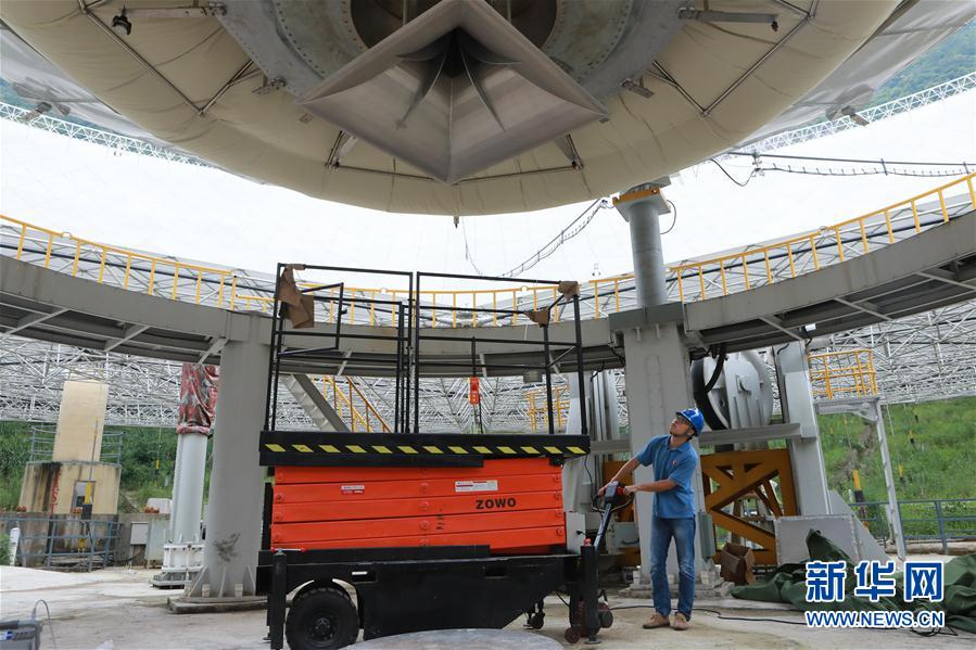 8月10日,石向瑋在FAST饋源艙前作業(yè)。新華社記者張傳奇 攝 -