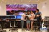 孫純(左一)與石向瑋(右一)在FAST總控室內(nèi)進(jìn)行觀測準(zhǔn)備(8月9日攝)。新華社記者張傳奇 攝