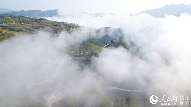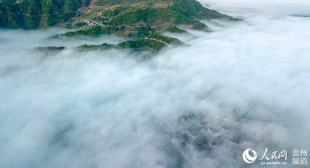 航拍貴州山村:霧繞仡鄉美如畫(高清組圖),4月17日,從空中俯瞰貴州省務川仡佬族苗族自治縣紅絲鄉先進村,晨曦透過云霧,光輝灑滿村莊與青山,形成一幅夢幻山村圖,宛若仙境。(田東)