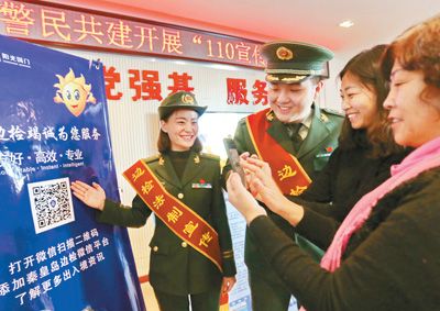 1月9日,河北省公安邊防總隊秦皇島邊防檢查站官兵走進海港區東環里社區,為居民講解出入境常識。在“110宣傳日”前夕,多地警方開展主題活動,宣傳報警、安全防范等有關知識,受到了廣大群眾的歡迎。