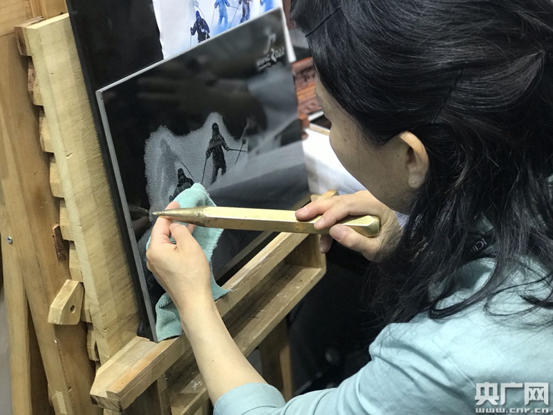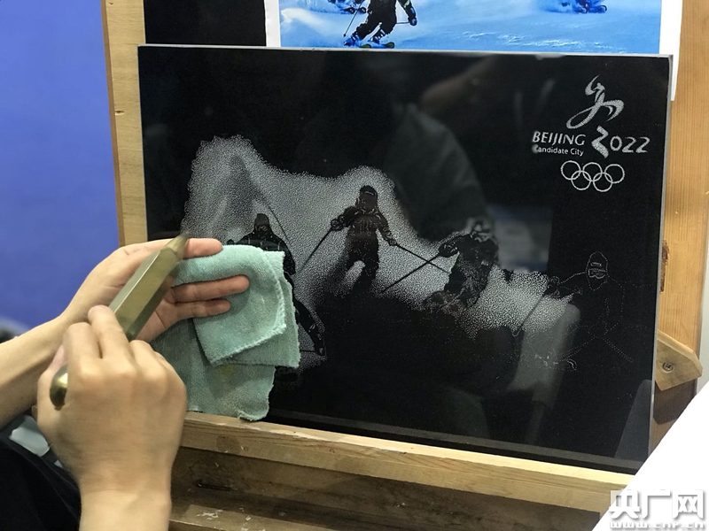 河北省石影雕工藝美術大師方士英女士現(xiàn)場創(chuàng)作北京冬奧會作品(央廣網(wǎng)發(fā) 閆金楓 攝)