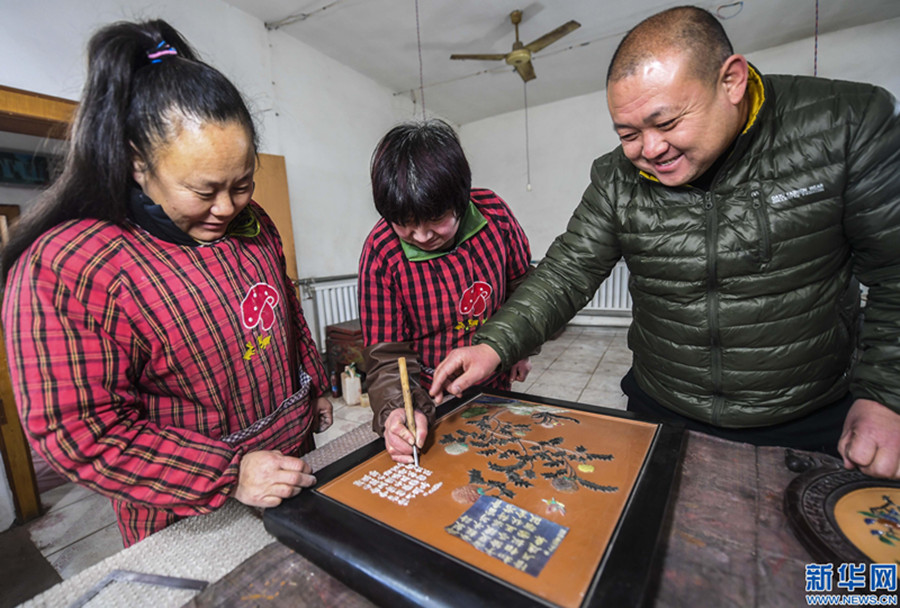 1月16日,河北省廊坊市廣陽區(qū)九州鎮(zhèn)南漢村手藝人(右)向幫扶對象講解鑲嵌技巧。河北省廊坊市廣陽區(qū)增強(qiáng)精準(zhǔn)扶貧的幫扶能力,通過與百姓結(jié)對子,為百姓找路子,幫助群眾脫貧致富。黨員干部、致富能手與貧困戶結(jié)對子,扶貧隊(duì)伍通過一對一入戶的形式,詳細(xì)了解幫扶農(nóng)戶的家庭現(xiàn)狀、收入來源等基本情況,根據(jù)幫扶農(nóng)戶的實(shí)際情況制定“一戶一策”,向幫扶農(nóng)戶提供脫貧致富的方法,在項(xiàng)目、資金、技術(shù)等方面提供全方位跟蹤服務(wù)。新華社記者 李曉果 攝 -