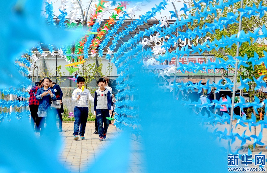 • 4月16日,游客在河北衡水花傘風車藝術展上參觀。新華社記者牟宇 攝