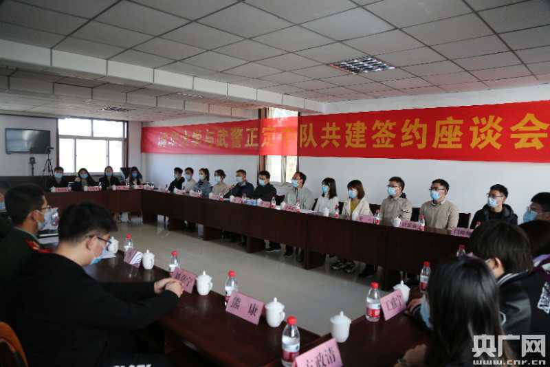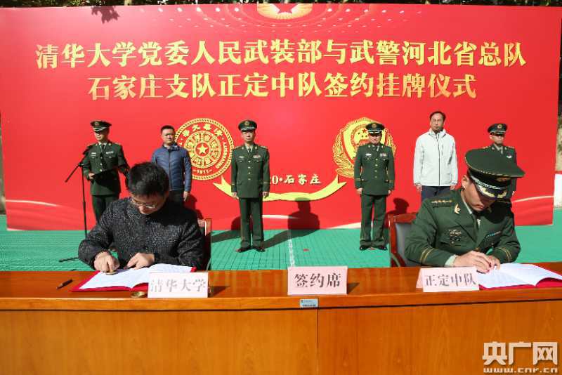 清華大學黨委武裝部和正定中隊簽約現(xiàn)場(央廣網(wǎng)發(fā) 武警正定中隊供圖)