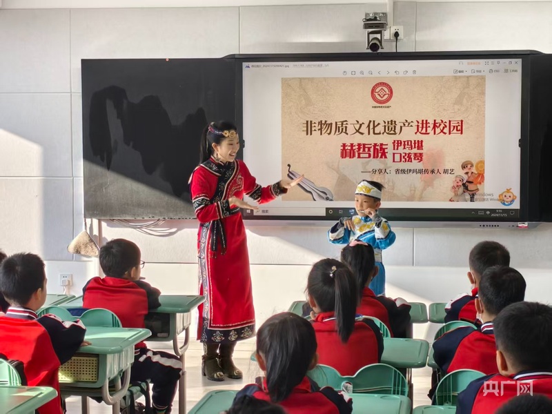 從鄉村小學到城市校園,伊瑪堪的傳承陣地不斷拓展。在佳木斯市第十九小學、敖其小學等10余所學校建立的傳承基地里,“每日一句赫哲語”晨讀、“非遺教育實踐周”展演等活動常態化開展,讓青少年成為傳承主力。在傳承隊伍中,“90后”赫哲族伊瑪堪省級傳承人胡藝,不僅堅守文脈,更在赫哲語原有基礎上梳理出系統的語言學習方法與語法規則,讓赫哲語拼讀更為簡便。“語言是伊瑪堪的生命,語言在伊瑪堪才能在,我們傳承人必須筑牢語言能力,讓它活起來、傳下去。”多年來,胡藝將伊瑪堪蒼勁的唱腔制作成短視頻發布在網絡平臺,傳統與現代的碰撞讓古老曲調收獲大批年輕粉絲,單條視頻瀏覽量曾多次突破百萬。