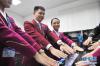 2月1日,寧儒(左二)、梁鶴(左三)在登機前進行儀容儀表檢查。新華社發(楚洪雨 攝) -