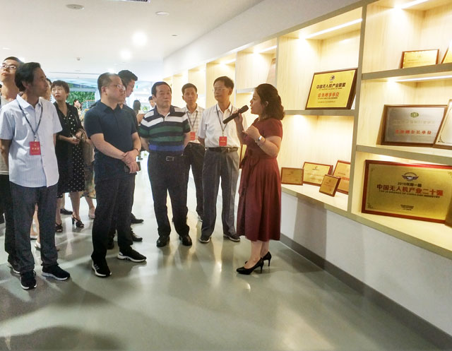 隨后,代表參觀了天鷹兄弟無(wú)人機(jī)展廳、企業(yè)文化墻等,并觀看了天鷹兄弟植保無(wú)人機(jī)作業(yè)視頻。現(xiàn)場(chǎng)負(fù)責(zé)人張思玲為大家詳細(xì)介紹了天鷹兄弟自成立以來(lái)發(fā)展歷程以及獲得的多項(xiàng)榮譽(yù),代表們對(duì)天鷹兄弟企業(yè)創(chuàng)新創(chuàng)業(yè)發(fā)展成果以及在農(nóng)業(yè)植保無(wú)人機(jī)領(lǐng)域做出的突出成績(jī)給予高度的評(píng)價(jià)。
