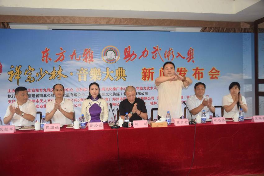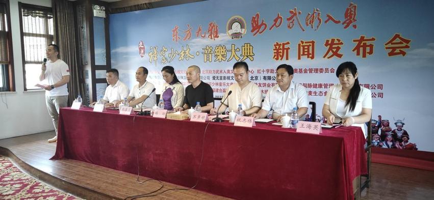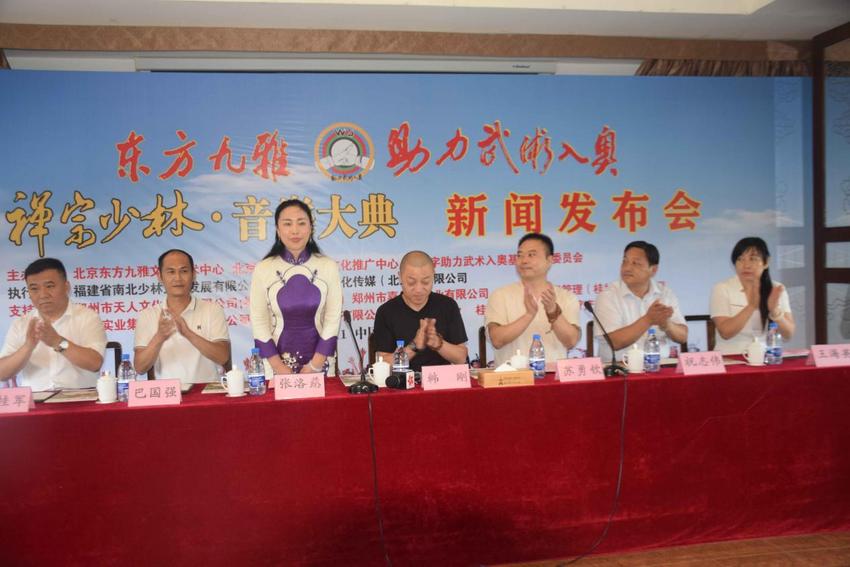 圖為東方九雅助力武入奧走進禪宗少林音樂大典的新聞發(fā)布會現(xiàn)場