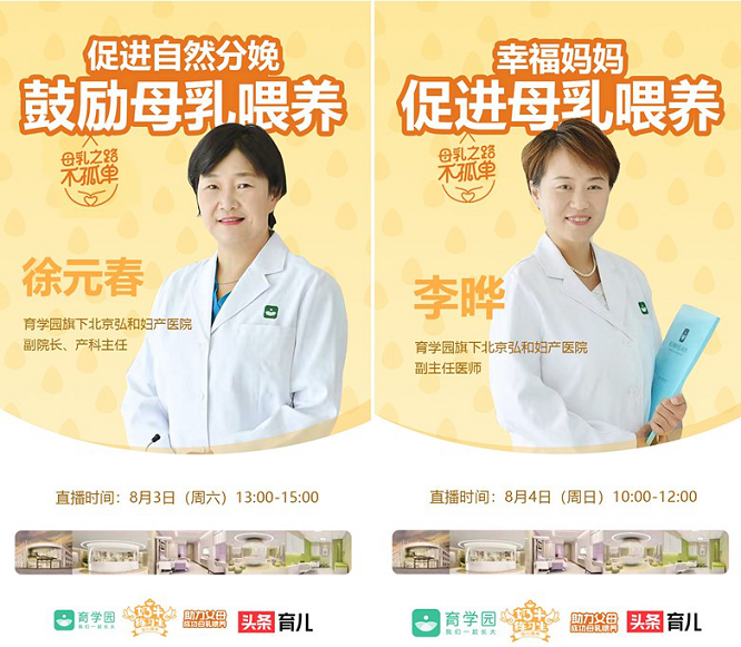 同時,在8月3日、4日,育學園旗下北京弘和婦產醫院內也舉辦了兩場關于母乳喂養的公益講座,產科主任徐元春、副主任醫師李曄分別針對孕期和哺乳期媽媽,帶來了兩場格外精彩、干貨滿滿的主題分享。講座全程通過抖音及西瓜視頻直播,近萬人同步觀看。