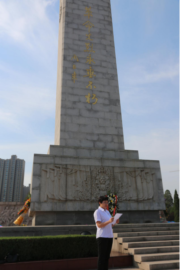 隨著集中學習的結束,鄭州新區支行黨支部來到鄭州烈士陵園,瞻仰革命烈士紀念碑,緬懷為革命勝利獻出寶貴生命的英雄兒女。在紀念碑前,鄭州新區支行黨支部向革命先烈敬獻花籃并三鞠躬。黨支部委員、副行長王健同志代表黨支部在紀念碑前致詞,緬懷革命先烈,告慰革命英靈。告誡全體黨員不能忘紅色政權是怎么來的、新中國是怎么來的、今天的幸福生活是怎么來的,要高舉中國特色社會主義偉大旗幟,堅定走中國特色社會主義道路,把先輩們開創的事業不斷推向前進。