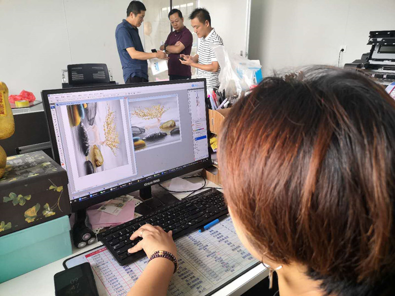 圖庫里選畫,電腦手動制作,自動噴繪打印......半小時不到,一幅辦公室墻上常見的裝飾畫出來了。再利索把它裝進畫框,它就可以順著物流發到客戶手里了。