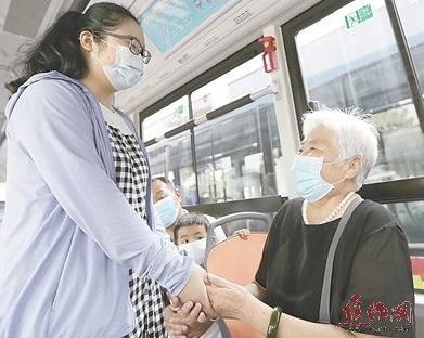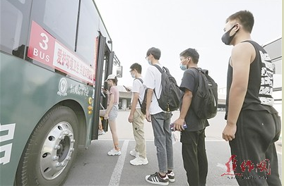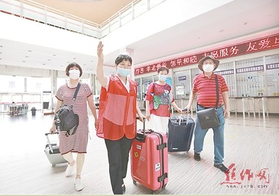 圖⑤ 8月29日下午,市汽車客運(yùn)總站,志愿者在引導(dǎo)乘客到候車大廳等車。