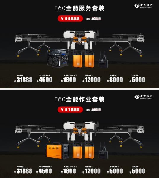 其中,正大航空F60農業無人機的重磅亮相,將是市面上綜合性能最強大的植保無人機之一,F60全能套裝售價為51888元,超能售價55888元;另一款產品F4打點測澮無人機,價格更顯平民化,該產品套裝僅為5188元。