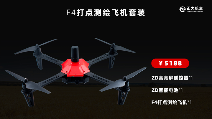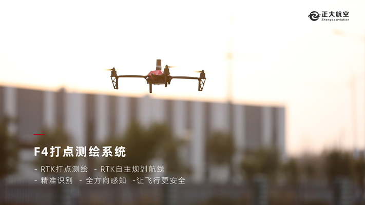 正大航空F4打點測繪無人機:搭載雙頻RTK厘米級定位飛機適合更大的地圖視野可控制飛行器實現智能航點規劃,自動執行,自動跟隨,一鍵回家,大幅提供專業領域任務的工作效率。