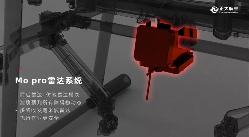 確保無人機在起飛或自主作業多路收發毫米波雷達高速轉動,仿地雷達+對地雷達,過程中躲避上方障礙物精準探測前方30米內的障礙物精準探測下方障礙物