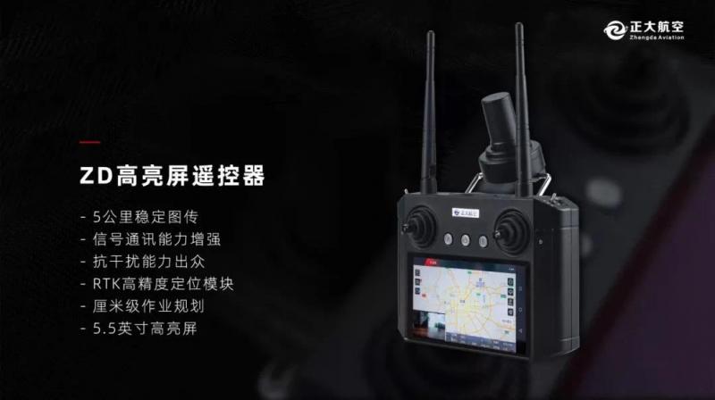 全新遙控器帶來5公里穩定圖傳,信號通訊能力增強,抗干擾能力出眾。一控多機,效率翻倍。標配RTK高精度定位模塊,輕松實現厘米級作業規劃。5.5英寸高亮屏,烈日強光下也能看清屏幕,系統運行更流暢,操作更簡單