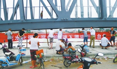 據了解,政二街過渠大橋,是個機動車道與人行道綜合的大橋,因人行道還沒有完工,行人還在機動車道上行走。一位過往行人告訴記者,釣魚也沒有啥錯的,如果把電動車或轎車停在機動車道上,就太不像話了,旁邊又是疾速車輛來回穿梭,也太危險了。□記者郭長秀通訊員 龍邦文圖
