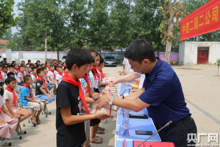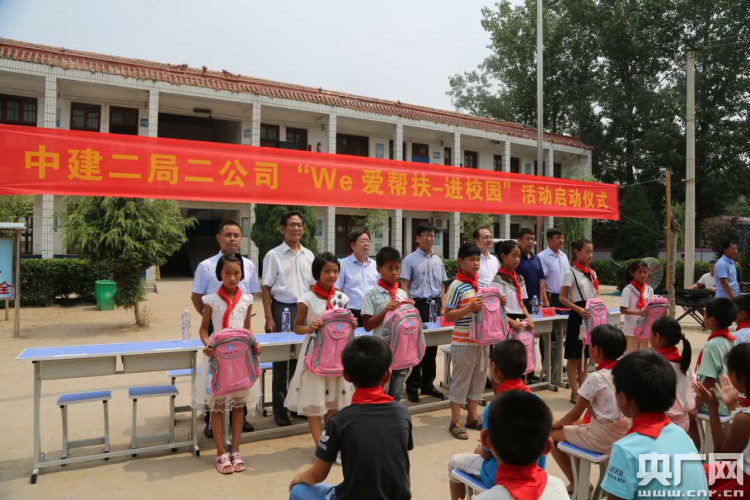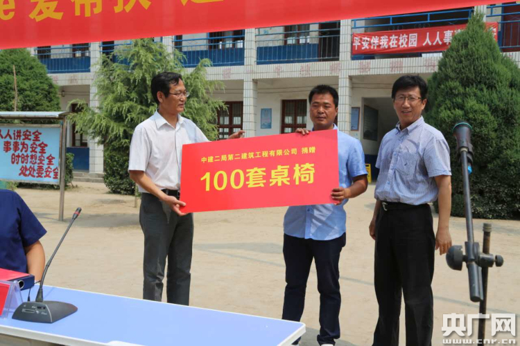 一場由中建二局第二建筑工程有限公司(下面簡稱中建二局二公司)與蘭考縣教體局聯(lián)合開展的“we愛幫扶—進校園”活動啟動儀式在十點整在此拉開序幕。中建二局二公司的員工們親自將2000冊課外讀物、100套課桌椅、300多個書包文具送到了孩子們的手中,并幫助他們安裝好乒乓球桌,耐心指導糾正孩子們的橫直拍握法,企業(yè)負責人鄭重接過由公司會同當地政府實地走訪調查最終確定的貧困生“一對一”幫扶名單,并裝進特別準備的檔案袋,并現場封存好。