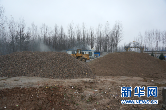 在易縣橋頭鄉附近,督查組發現沒有經過任何苫蓋的砂石料 新華網記者 袁晗攝