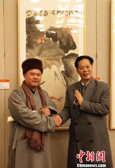 2月7日,“中國(guó)書(shū)畫(huà)名家禪意作品邀請(qǐng)展”在北京全國(guó)政協(xié)禮堂開(kāi)展,共展出包括全國(guó)政協(xié)委員、中國(guó)法治詩(shī)書(shū)畫(huà)院院長(zhǎng)汪國(guó)新(右)等多位書(shū)畫(huà)名家的120多幅作品