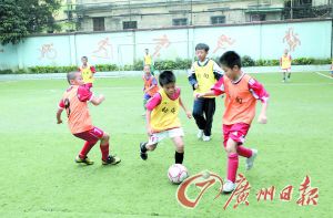 廣州市海珠區(qū)后樂園街小學(xué)的學(xué)生在訓(xùn)練踢足球(資料圖片)