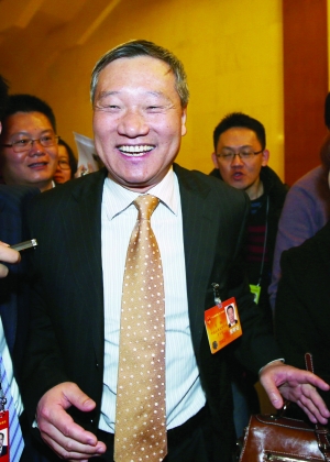 3月9日,中國證監(jiān)會主席肖鋼列席十二屆全國人大二次會議時被記者圍堵 記者史麗攝