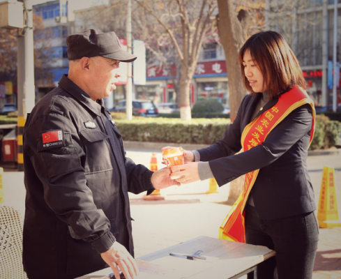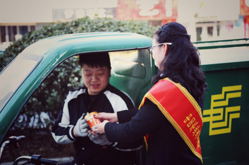 3月6日,農發行保定市滿城區支行的青年員工走上街頭,為烈陽和寒風中默默工作的清潔工人、奔波于大街小巷的快遞小哥和駐守在小區門外的保安人員,這些常年工作在室外的的勞動者們送去了一杯熱乎乎的奶茶和暖暖的愛心,奏響了一曲“奉獻、有愛、互助、進步”的雷鋒精神贊歌。