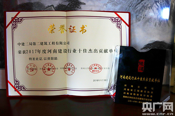 喜訊!中建二局二公司榮獲“河南建設(shè)行業(yè)十佳杰出貢獻(xiàn)單位”