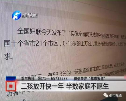 根據(jù)全國(guó)婦聯(lián)的調(diào)查報(bào)告,全國(guó)50%以上的一孩家庭沒有生育二孩的意愿,而在發(fā)達(dá)省份、城市地區(qū)、這個(gè)比例達(dá)到了60%.其實(shí)我們走訪鄭州街頭,生育二孩的積極性,真的沒有那么高漲。
