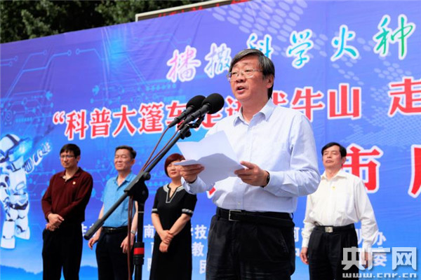 科普大篷車走進伏牛山走進貧困縣”科技志愿服務活動啟動現場(央廣網發 通訊員 王紅松供圖)