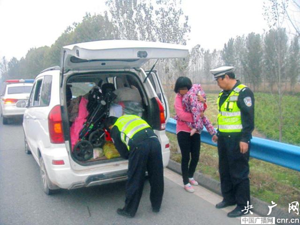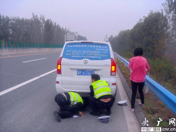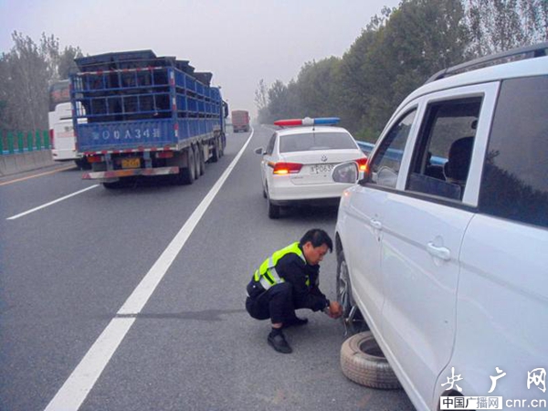 回家途中車爆胎母子被困 周口高速交警緊急救助保平安
