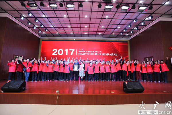 央廣網河南分網10月30日消息 (本網特別報道組)昨天是傳統佳節重陽節,來自河南南陽的掛面企業想念食品邀請近百名長壽老人參加公司組織的孝文化節,并為這些老人準備了一份特殊的禮物——長達3048.32米的長壽面。這根面條也打破了日本人于2007年創下的548.7米的最長面條吉尼斯世界紀錄,成為有史以來世界最長的面條。