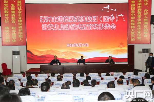 央廣網(wǎng)漯河3月18日消息(記者 彭華 通訊員 趙陽 姚遠(yuǎn))3月17日下午,漯河市委宣傳部在漯河醫(yī)學(xué)高等專科學(xué)校報告廳舉行道德模范進(jìn)校園講黨史啟動儀式暨首場報告會。全國道德模范提名獎榮獲者、全國公安楷模、中國好人陳曉磐作了題為《學(xué)黨史強(qiáng)信心增干勁 守初心擔(dān)使命建偉業(yè)》的專題報告。