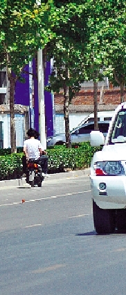 伴隨著“突突突”的摩托聲,騎車男孩稍稍看了一眼穿梭的車流,兩腳蹬地,右手一使勁,摩托車箭一般飛奔出去,這時,由東向西的信號燈顯示為紅燈。