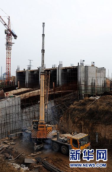 這是南水北調中線工程新鄭南段新商鐵路渠道倒虹吸施工現場(11月13日攝)。