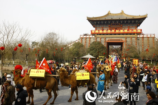 央廣網(wǎng)河南分網(wǎng)消息 據(jù)人民網(wǎng)報(bào)道:3月8日,百峰駱駝走進(jìn)國(guó)家5A級(jí)景區(qū)——開(kāi)封清明上河園,通過(guò)此次活動(dòng),清明上河園景區(qū)向人們展示了“八朝古都”開(kāi)封悠久歷史文化和北宋時(shí)期輝煌的茶路文化,讓游客真切感受“一朝步入畫(huà)卷、一日夢(mèng)回千年”的時(shí)光倒流之感。