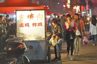 除了真真切切地滿足味蕾,城中村的小吃亦是極大的視覺享受。特別是在夏天晚上,長長的街道兩側盡是露天擺放的各色小吃,遠遠望去頗為壯觀,什么開封的雞血湯,豫東的吊爐燒餅,色澤鮮亮的道口燒雞……各色美食在燈光下散發出誘人的味道。置身其間,目光所至,盡是人間草根美食,常有目不暇接之感,仿佛顧盼之間,就已感受了這些美味。