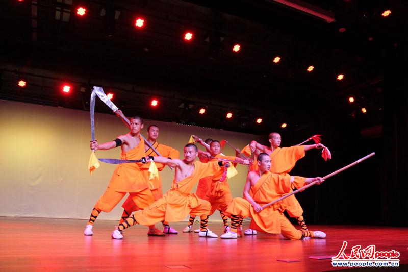 央廣網河南分網消息 據人民網報道:“2014中國河南文化年”系列活動之一武術舞蹈專場演出22日晚在泰國曼谷的中國文化中心精彩亮相。由河南鄭州歌舞劇院和河南登封塔溝武術學校組成的演出團為泰國觀眾帶來了舞蹈《夜深沉》、《甲骨隨想》與武術《闖山門》、《少林十八般兵器》《象形拳》、《少林雄風》等獨具中國文化特色的節目,少林神功絕技與古典舞蹈的柔美交相輝映,令觀眾不斷驚嘆叫絕。許多觀眾連連說,太精彩!一定要帶更多朋友去觀看24日的下一場演出,讓他們領略中國文化的精美絕倫。