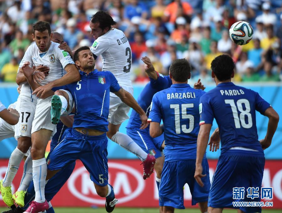 央廣網河南分網消息 據新華網報道:烏拉圭1-0小勝意大利淘汰對手。比賽下半場風云迭起,先是意大利首戰功臣馬爾基西奧不明顯的犯規被裁判紅牌驅逐,之后烏拉圭神鋒蘇亞雷斯嘴咬基耶利尼,81分鐘烏拉圭隊長戈丁頂入制勝球。這樣,烏拉圭三戰兩勝一負小組第2出線,意大利三戰一勝兩負出局。