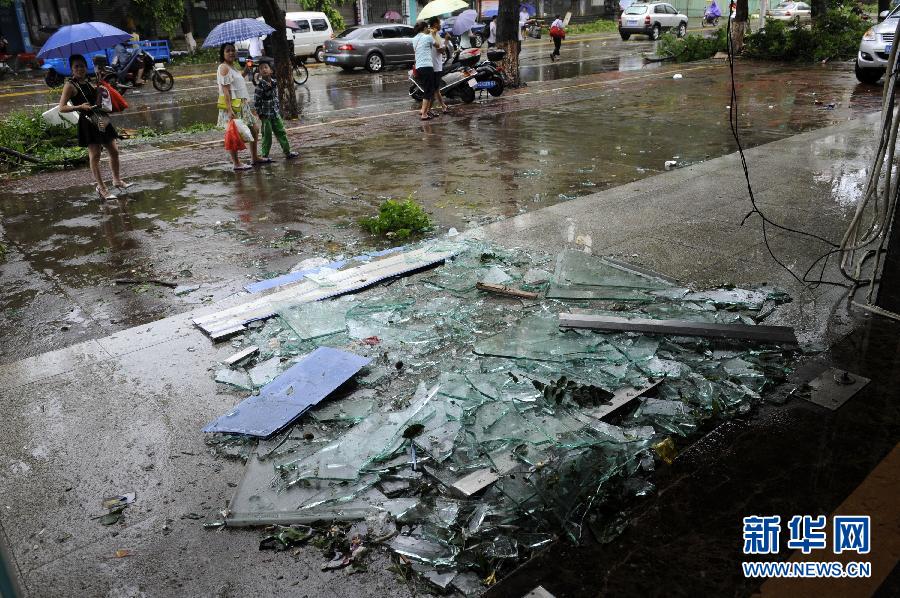 7月19日,廣東徐聞縣城一家旅館的玻璃幕墻完全破碎。 7月18日19時30分前后,今年第9號臺風“威馬遜”在廣東湛江徐聞縣龍塘鎮沿海再次登陸,登陸時中心附近最大風力17級(超強臺風級)。“威馬遜”過境后,廣東湛江徐聞縣城內滿目瘡痍,電力等城市基礎設施遭受重創。(新華社 記者 梁旭 攝)