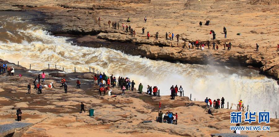 :壺口瀑布;旅游旺季;冰雪融化;游人;景區;游覽;拍攝;消融;氣溫