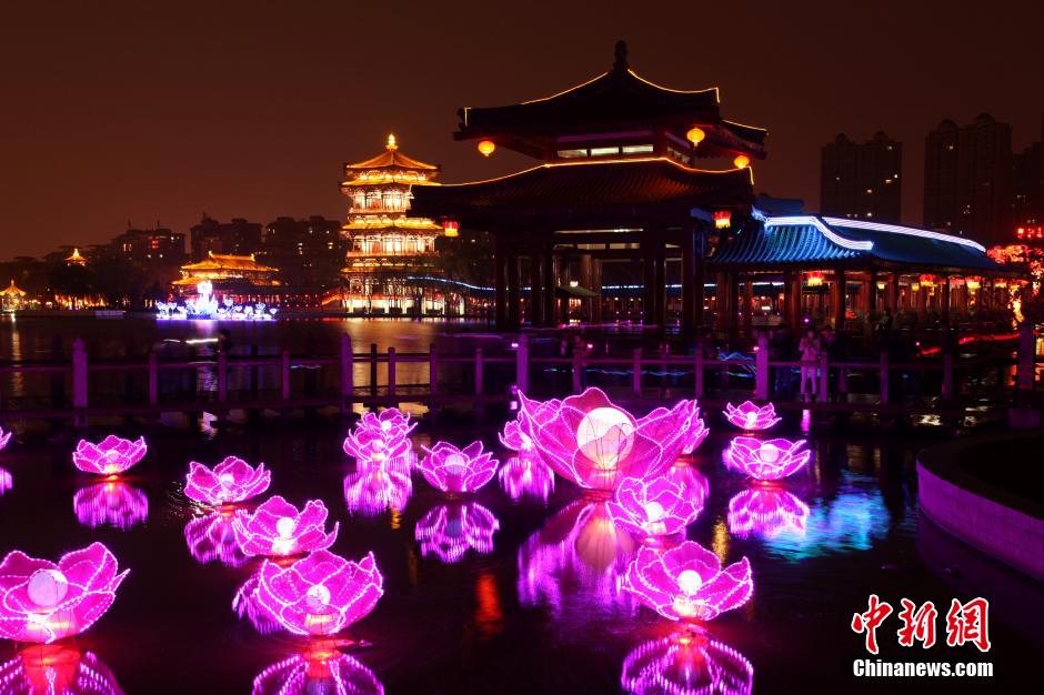 央廣網河南分網消息 2015年3月2日,游客和市民在西安大唐芙蓉園觀賞元宵花燈。當晚,西北地區最大的新春傳統水陸燈會在西安大唐芙蓉園火熱舉行,“中國風”與“動漫卡通”文化混搭的各類花燈為即將到來的元宵佳節增添了喜慶氣氛,眾多游客和市民競相體驗。中新社發 彭華 攝 圖片來源:CNSPHOTO