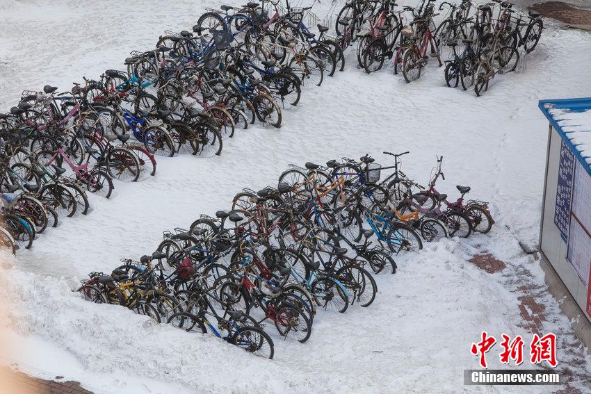 央廣網(wǎng)河南分網(wǎng)消息 3月4日,長春,在吉林大學(xué)宿舍樓下,大面積的自行車堆積如山。這些無人認(rèn)領(lǐng)的自行車大多是因為高校學(xué)生在畢業(yè)后丟棄所致,積雪將這些破舊的自行車覆蓋。圖片來源:CFP視覺中國