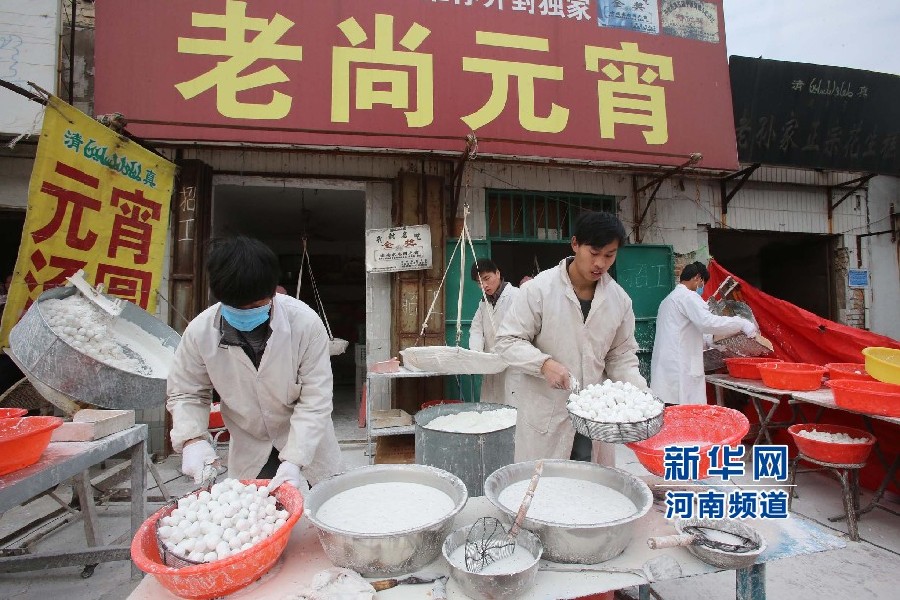 3月4日,開封市一家老字號元宵店的工人們正在用傳統手工工藝制作元宵。