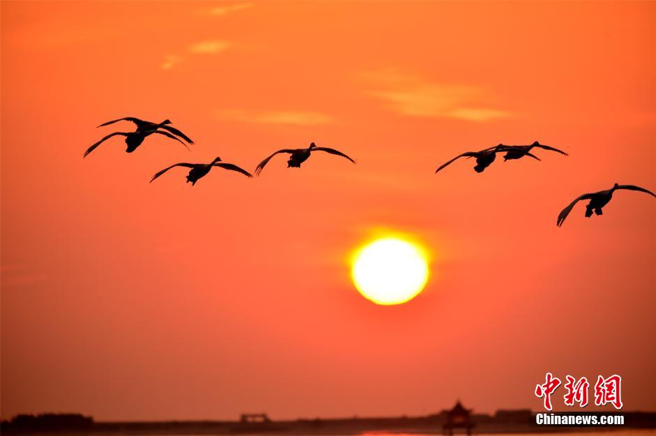央廣網(wǎng)河南分網(wǎng)消息 3月5日,山東省榮成市成山天鵝湖,美麗的大天鵝在朝陽下啟程飛走。時近驚蟄,在亞洲最大的天鵝冬季棲息地山東省榮成市成山天鵝湖,越冬天鵝開始陸續(xù)向北方的夏季棲息地遷徙。據(jù)了解,每年11月,有上萬只來自俄羅斯西伯利亞等地區(qū)和我國新疆等地的大天鵝遷來此地越冬,并于次年3月初向北方遷徙。目前約有4000多只大天鵝離開榮成。 中新社發(fā) 朱愛琴 攝 圖片來源:CNSPHOTO
