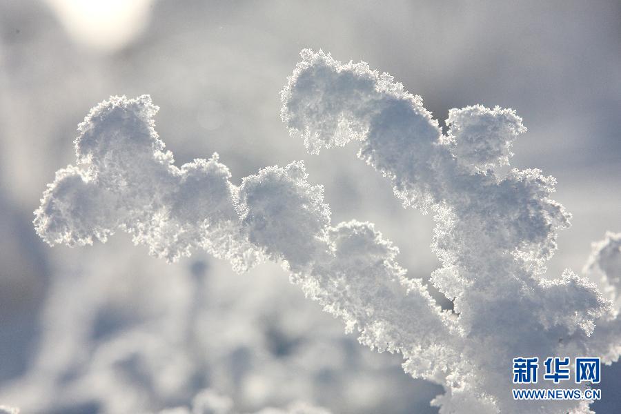 11月8日在新疆哈密天山風景區拍攝的晶瑩剔透的樹掛。