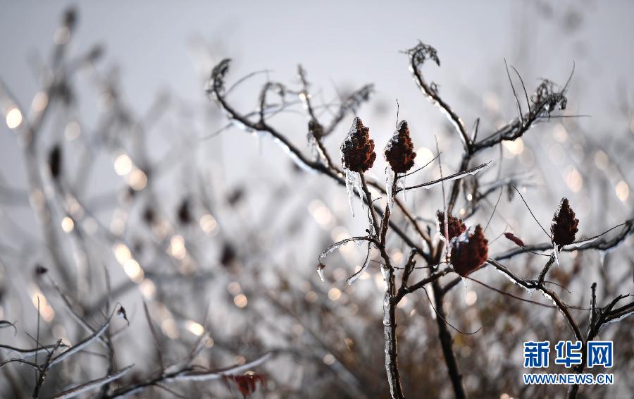 央廣網河南分網消息 11月9日,遼寧省瓦房店市的一處樹木被冰覆蓋著。當日,經歷了一場凍雨的遼寧瓦房店地區的樹木被一層層冰包裹著,在陽光下晶瑩剔透。 新華社記者 姚劍鋒 攝