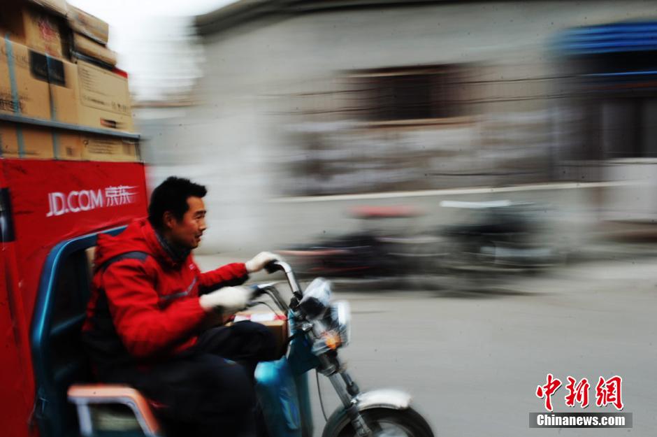 央廣網(wǎng)河南分網(wǎng)消息 11月11日傍晚,一場斷斷續(xù)續(xù)的零星小雨加劇了甘肅省會蘭州初冬的寒意,戶外逼人的寒風(fēng)催促著城區(qū)上班一族回家的步伐。忙得焦頭爛額的京東派送員蒲澤民一天沒顧得上吃飯,此時(shí)他又駕駛著一輛滿載貨物的三輪摩托,直奔回家高峰期的各個(gè)住宅小區(qū)“倒時(shí)差”送貨。 楊艷敏 攝