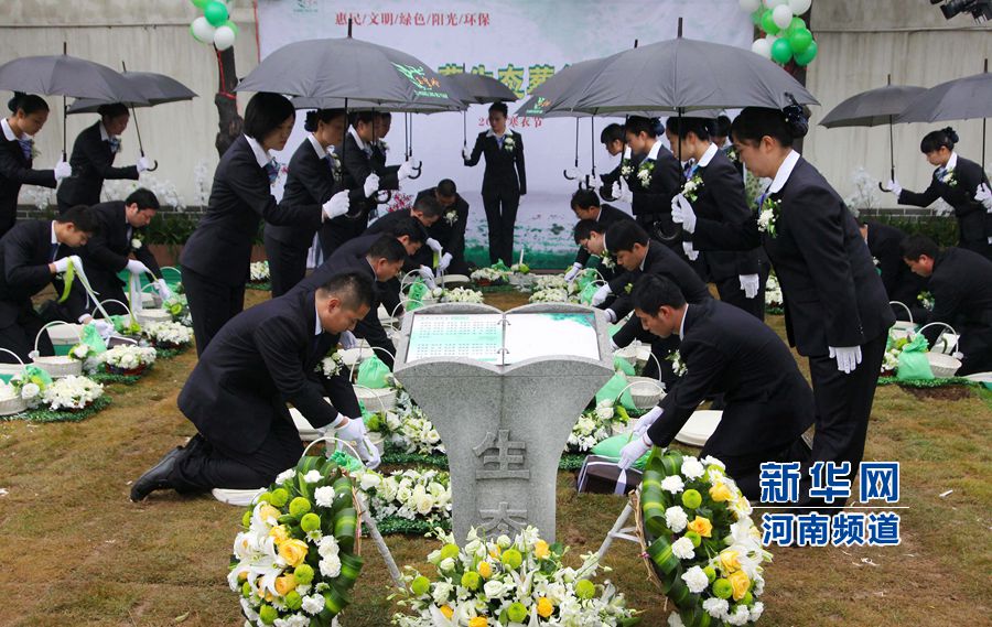 央廣網河南分網消息 當日,河南省許昌市舉行“關懷生命,伴綠長青”免費生態環保葬集體落葬儀式。此次生態環保葬禮共有28個家庭報名,“生態葬”采用不留名、不立碑、骨灰不保留,使用降解骨灰盒落葬的方式,達到骨灰自動分解、回歸自然,土地循環利用的目的。牛原 攝影