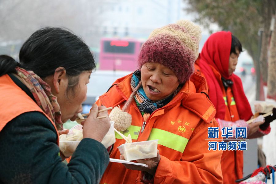 12月22日,在河南省鄭州市,“餃子哥”王孝利和志愿者們將一碗碗熱騰騰的餃子送到了環(huán)衛(wèi)工人手中。當日是農(nóng)歷二十四節(jié)氣中的“冬至”,“餃子哥”和志愿者們準備了600份餃子,免費送給環(huán)衛(wèi)工人、執(zhí)勤交警和外來務工人員,讓他們在寒冬中感受溫暖。這一做法,“餃子哥”已連續(xù)堅持了4年。 馮磊 攝